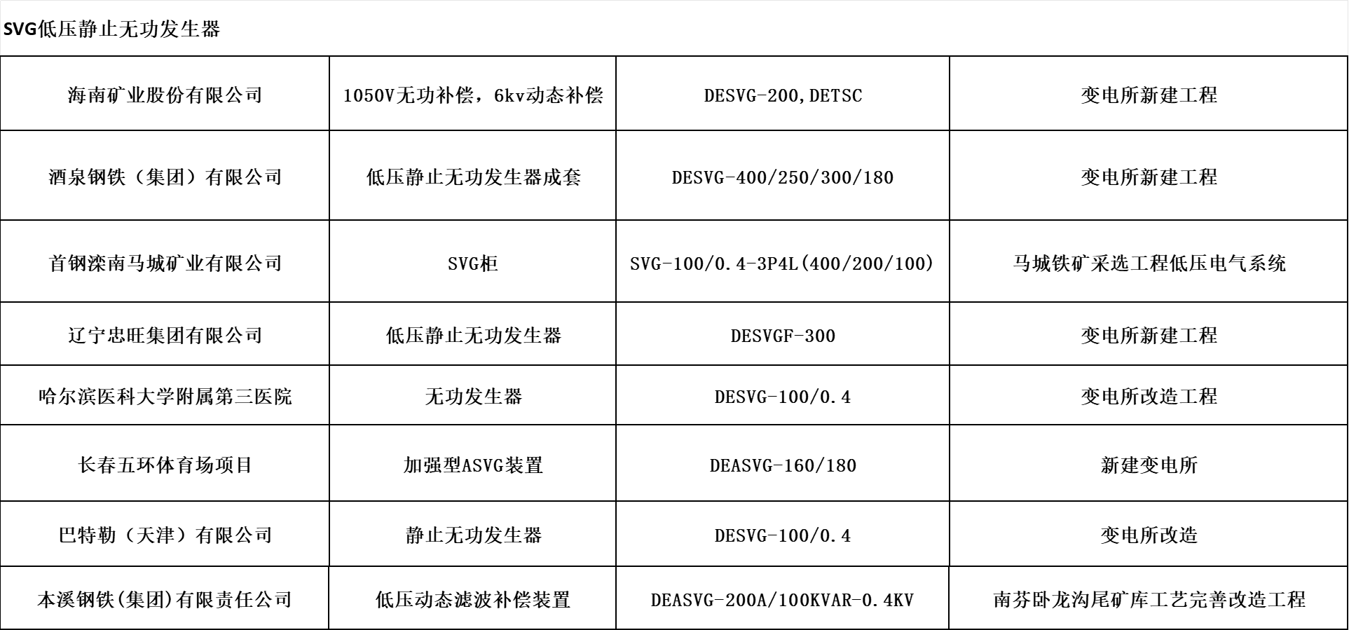 SVG能輸出容性及感性無功功率的特質(zhì)有效解決了鐵路、城市地鐵、輕軌等軌道交通行業(yè)及煤礦、鐵礦等礦山行業(yè)的系統(tǒng)存在的功率因數(shù)偏低、負載運行頻繁波動及存在無功倒送現(xiàn)象等電力系統(tǒng)問題。