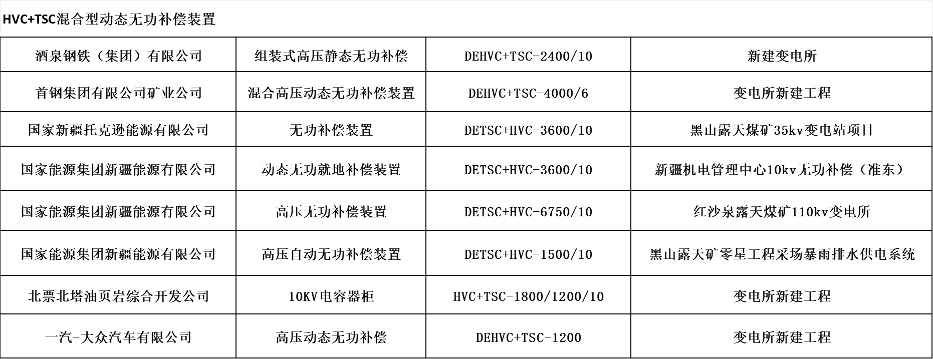 高壓HVC+TSC動態(tài)無功功率補償裝置廣泛應用于高壓交直流輸變電系統(tǒng)和冶金、煤炭、港口門機、電氣化鐵路、重型機械制造等工業(yè)、交通沖擊性負荷配電網中。其主要作用就是對沖擊性負荷、時變負荷能夠實時監(jiān)測、動態(tài)補償,實現(xiàn)功率因數(shù)補償至0.9以上,穩(wěn)定系統(tǒng)電壓,減少供電系統(tǒng)的網絡損耗,提高電能質量等顯著特點,可以給用戶帶來巨大的經濟效益和社會效益。